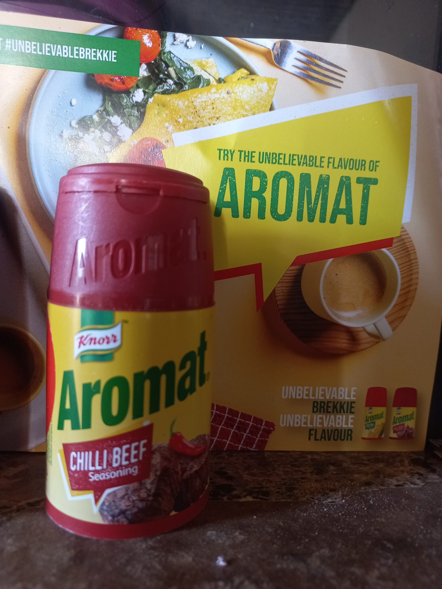 Aromat is the go-to seasoning in my household. I add it to my dishes daily and we make sure that we never run out. Aro-mielies, Aro-everything! @mumbox #UnbelievableBrekkie #mumboxaromat #unbelievableflavour #aromat
